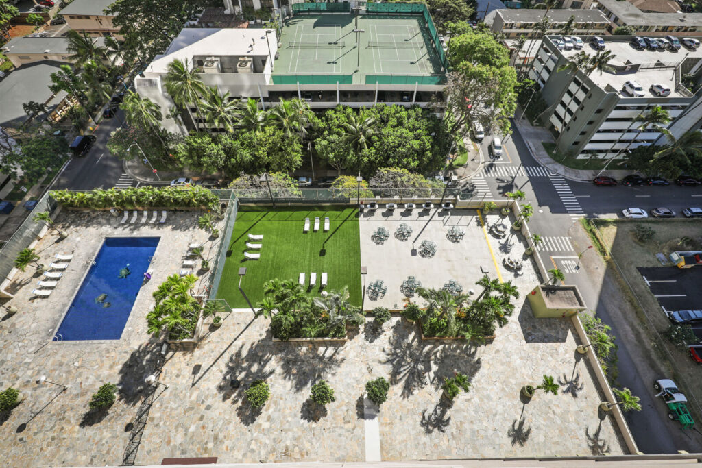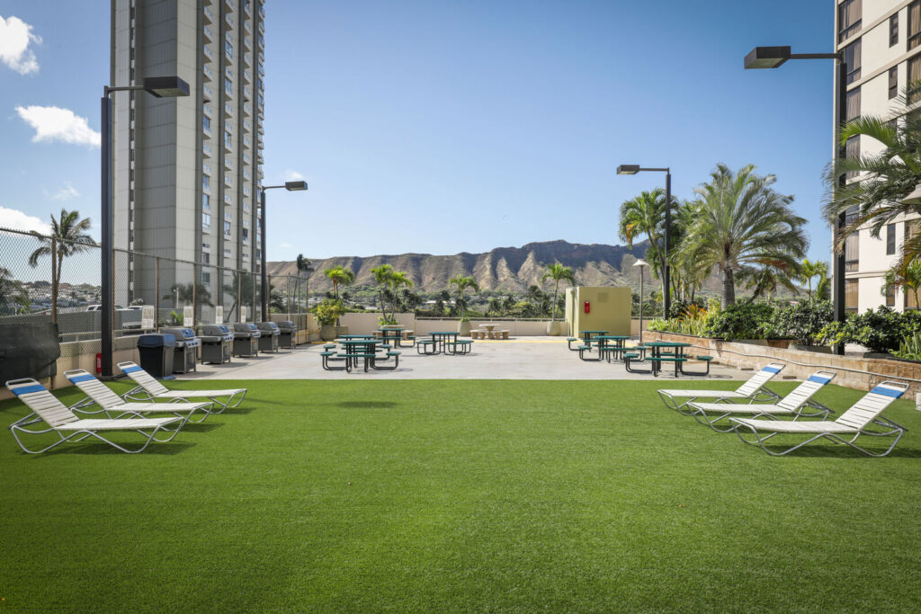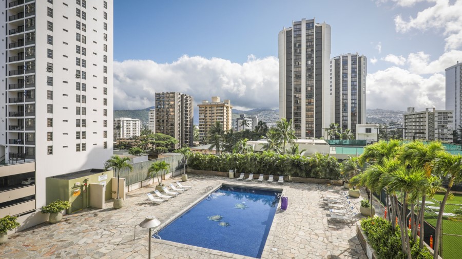 館内にはレクリエーションデッキに温水プールや照明付きテニスコート、バーベキューグリルなどがあり、ハワイ滞在をさらに快適に過ごせるような施設も充実しているためファミリー、グループ旅行の最適なホテルとして人気です。