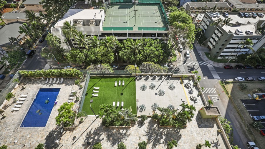 周辺は落ち着いた環境となっていながら、ワイキキビーチへは徒歩6分、また近くに手軽なレストランやコンビニエンスストアもあります。