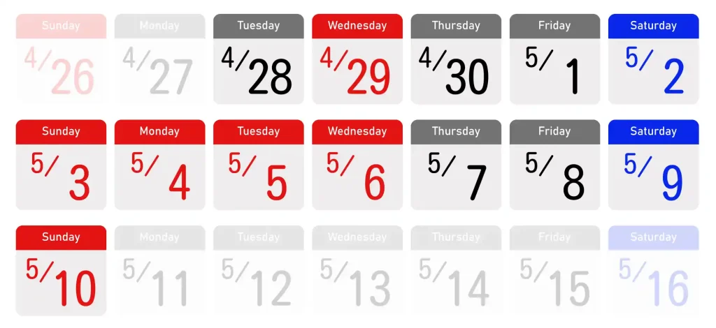 設定日:2026年4月28日出発~2026年5月10日帰着まで