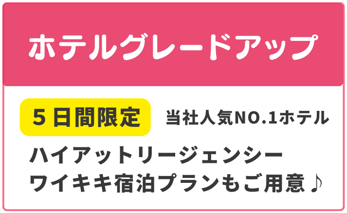 | 宿泊ホテル | パーク ショア ワイキキ ハイアット リージェンシー ワイキキ(5日間のみ) |