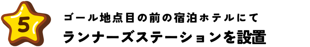 宿泊ホテルにて「ランナーズステーション」を設置し、飲み物や軽食をご用意しております。